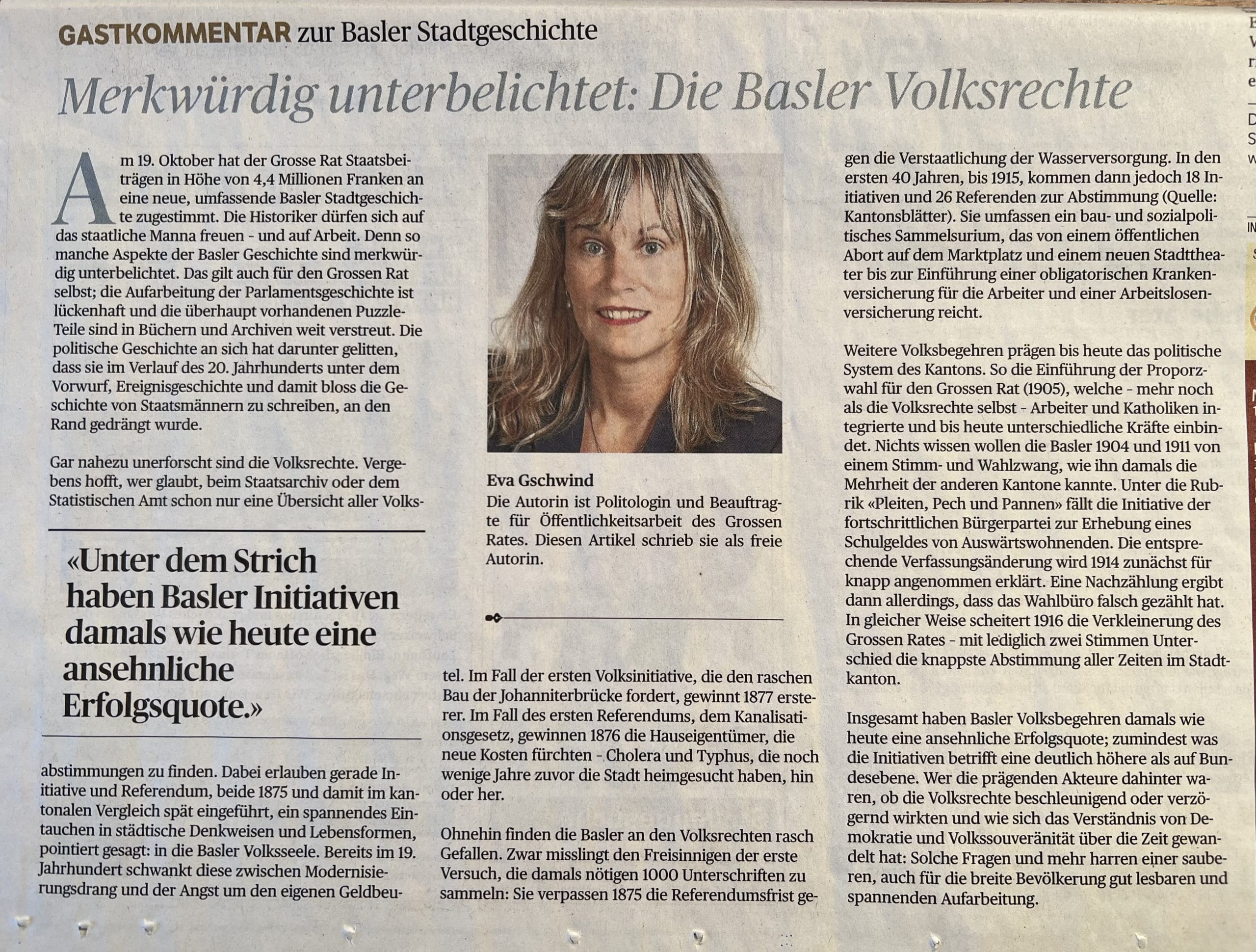 Merkwürdig unterbelichtet: Die Basler Volksrechte. Gastbeitrag. bz basel (26.10.2016)
