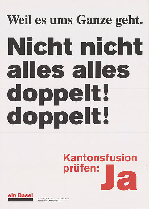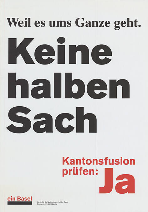Parolen Weitere Ja: Verein für die Kantonsfusion beider Basel, HKBB, Regio Basiliensis