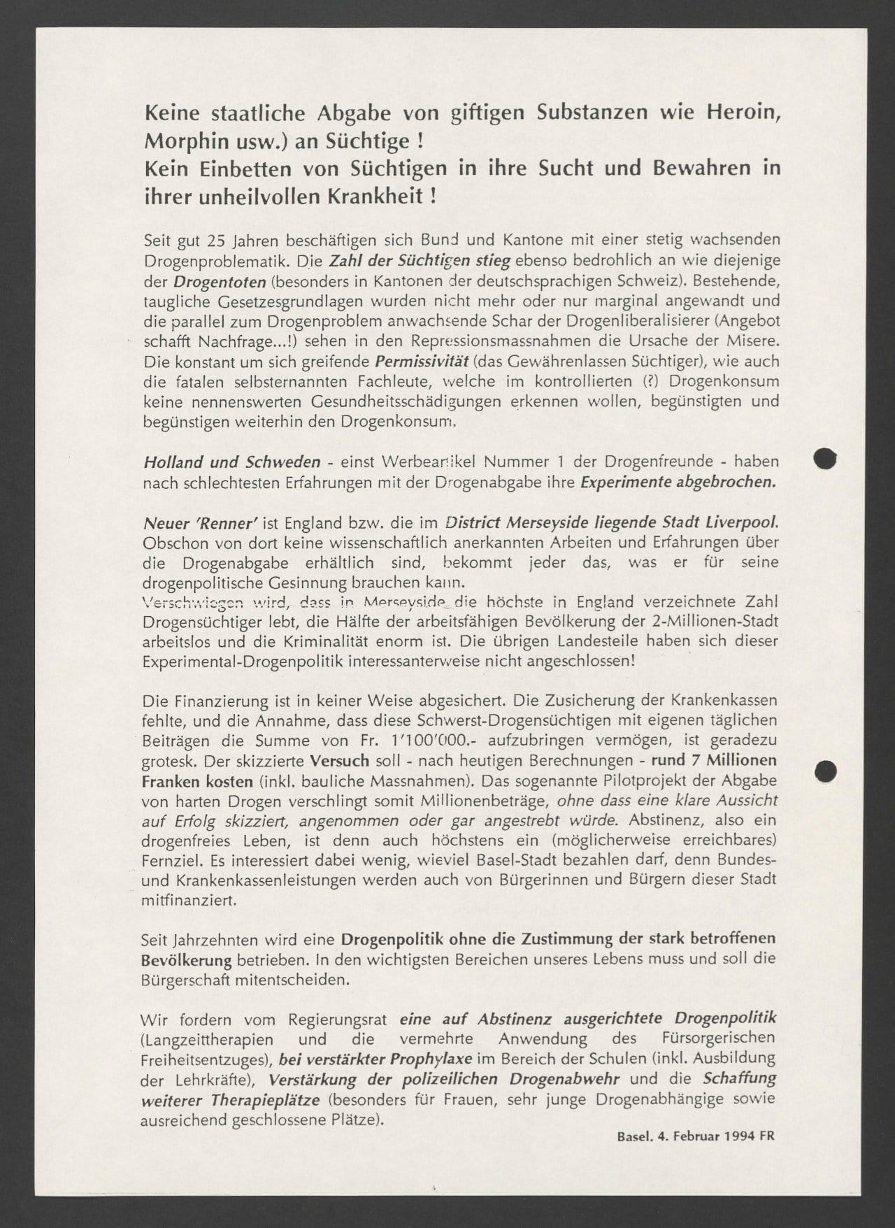 Chronik Artikel: Der Versuch einer legalen Opiatabgabe |