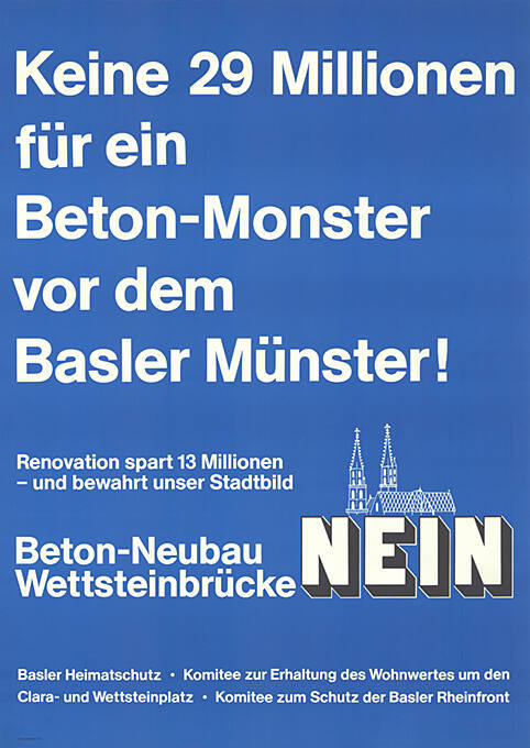 Ja: Komitee neue Wettsteinbrücke, Basler Ingenieur- und Architektenverein, Handelskammer, Gewerbeverband Nein: Heimatschutz, Freiwillige Denkmalpflege, Komitee zur Erhaltung des Wohnwertes um den Clara- und Wettsteinplatz, Komitee zum Schutz der Basler Rheinfront, Quartierkoordination Unteres Kleinbasel |