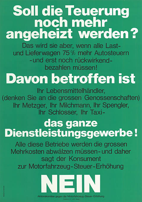 Ja: Aktionskomitee für eine gerechte Motorfahrzeug-Steuer Nein: Aktionskomitee gegen die Motorfahrzeug-Steuer-Erhöhung, ACS/TCS |