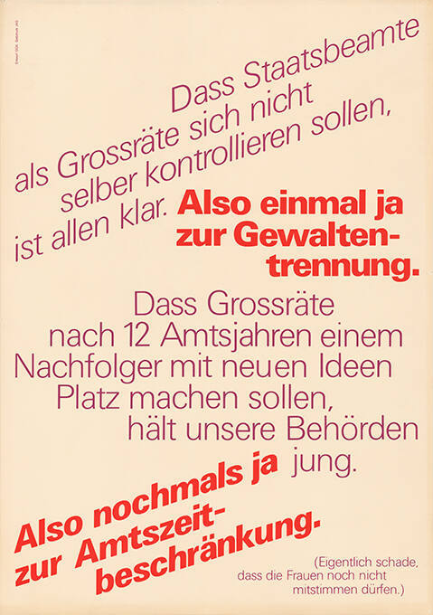 Es handelt sich um die Umsetzung der 1964 angenommenen Volksinitiative, die eine Amtszeitbeschränkung für Grossratsmitgliedern von drei Legislaturperioden, also zwölf Jahren, forderte. (S. Abstimmung vom 24.5.1964). In der Verfassung wurde verankert, dass wer dem Grossen Rat ununterbrochen während drei Amtsperioden angehört hat, für die nächstfolgende Amtsperiode nicht wählbar ist. Angebrochene Amtsperioden wurden dabei als ganze gezählt. Die neue «Amts-Guillotine» bedeutete für rund die Hälfte der Grossräte, dass sie bei den nächsten Wahlen nicht mehr antreten konnten.