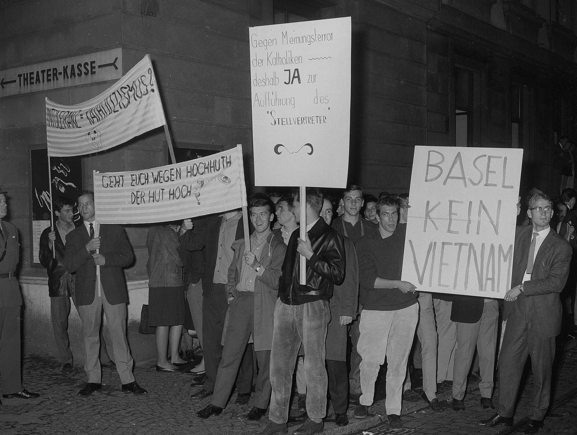 | Beschreibung der Vorlage | Der Grossratsbeschluss betraf einen Staatsbeitrag von 4,5 Millionen Franken an die Genossenschaft des Basler Stadttheaters; dies für die Spielzeit 1965/66. Die katholischen Gegenstimmen waren Proteststimmen gegen die papstkritische Aufführung «Der Stellvertreter» von Rolf Hochhuth, die heftige Demonstrationen – und Gegendemonstrationen – hervorgerufen hatte. |