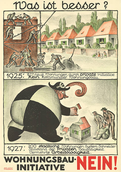 | Beschreibung der Vorlage | Die «Wohnunginitiative» verlangte von der Einwohnergemeinde der Stadt Basel, dass sie innert drei Jahren 600 Wohnungen mit 3 bis 4 Zimmern erstellt und diese preisgünstig an kinderreiche, unbemittelte Familien vermietet. Weiter sollte sich der Staat am genossenschaftlichen Wohnungsbau beteiligen. |